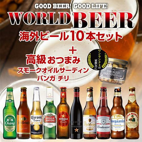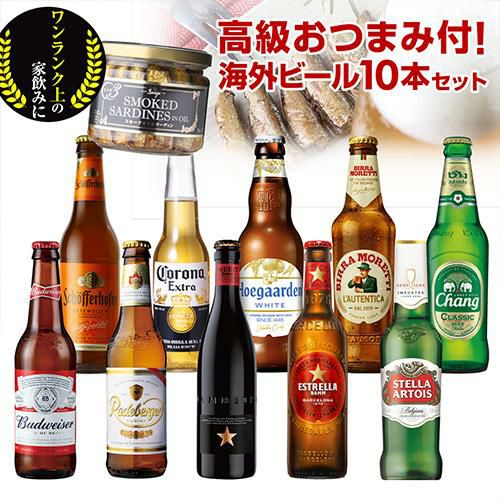 人気の海外ビール10種10本セット+スモークオイルサーディン