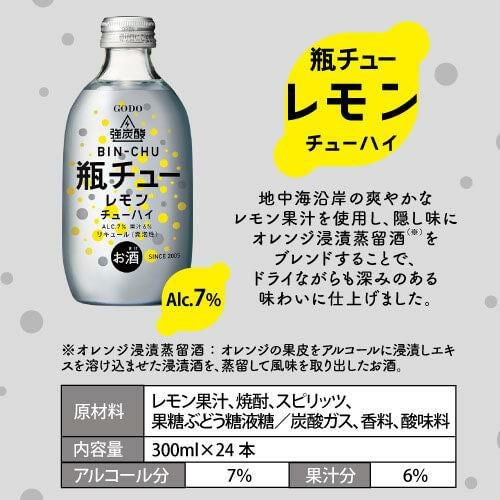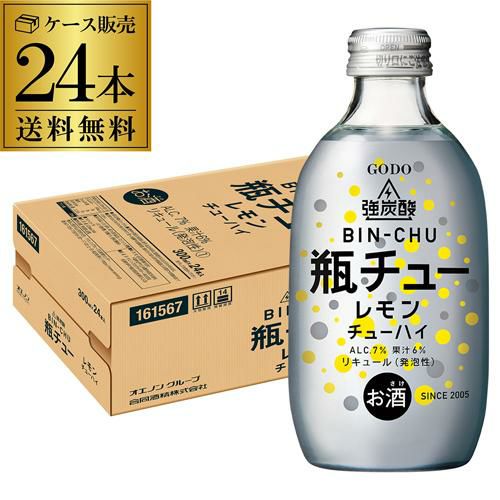 送料無料 瓶チュー レモン 300ml×24本 7% 1ケース 強炭酸 合同酒精