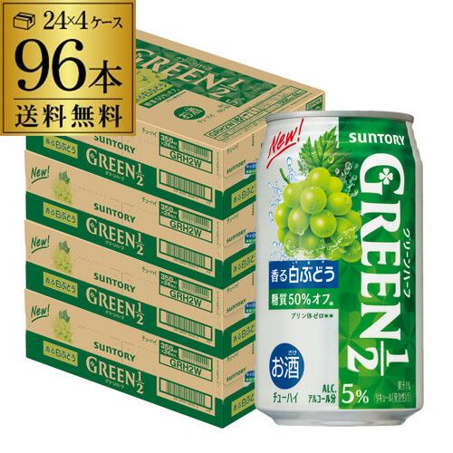 4. 送料無料 サントリー グリーンハーフ 白ぶどう 350ml×96本 (24本×4ケース) 1本あたり114円(税別) GREEN1/2 糖質50%オフ 缶チューハイ サワー ブドウ 葡萄 チューハイ 長S