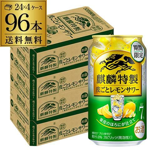 本州/東北/四国/九州は送料無料! 送料無料 麒麟 特製 皮ごとレモンサワー 期間限定 350ml缶×96本 (24本×4ケース) キリン チューハイ サワー レモンサワー レモン 長S