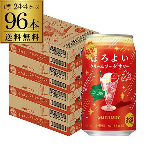 本州/東北/四国/九州は送料無料! 送料無料 サントリー ほろよい クリームソーダサワー いちご 期間限定 350ml缶×96本 (24本×4ケース) チューハイ サワー 缶チューハイ 苺 イチゴ SUNTORY 長S