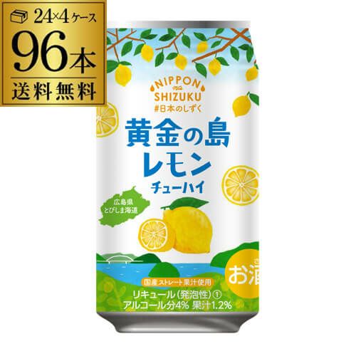 送料無料 日本のしずく 黄金の島 レモンチューハイ 数量限定 350ml×96本 1本あたり133円(税別) チューハイ レモンサワー オリジナル 国産 広島県 呉市 国産ストレート果汁 RSL