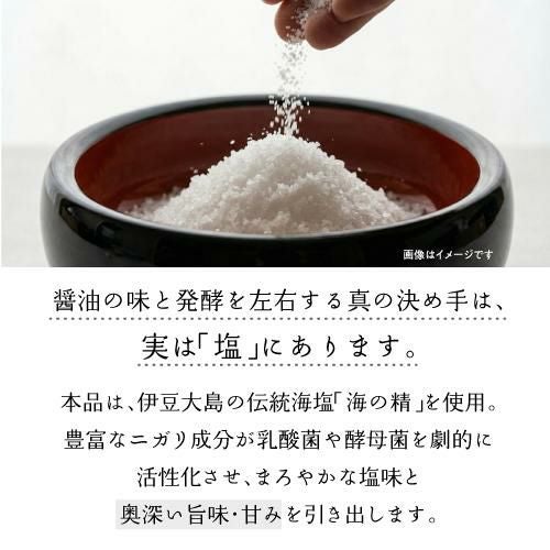 ごく貴重な有機JASの国産大豆と国産小麦、秩父の城峰山頂付近からわく天然水、そして伝統海塩「海の精」でつくりました。杉桶で仕込み、天然醸造法で1年以上、じっくり発酵熟成させています。塩水割りはしていない純醤油です。醤油としても有機JAS認証を取得しています。※妊娠中・授乳中・処方された薬を服用している方や、特定原材料・特定原材料に準ずるもの等のアレルギーをお持ちの方は、かかりつけのお医者様にご相談の上、ご購入・お召し上がりください。また、アレルギーに関しては個人差がありますので、特定原材料・特定原材料に準ずるもの等の食物アレルギーをお持ちではない方でも、お体に合わないなと感じられた場合はすぐにご使用をやめ、お医者様にご相談下さいますよう、よろしくお願い致します。