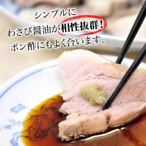 2時間以上じっくり煮込んだお肉のやわらかさが自慢のまっしろな煮豚です。塩の味というよりもバラ肉の旨味がしっかりと味わえます。豚バラ肉と食塩のみで作る旨い煮豚をぜひお楽しみください。