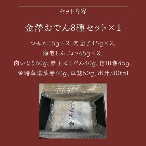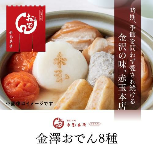 1月20日(金)以降のご注文は2月6日(月)以降順次発送予定 送料無料 赤玉おでん 冷凍 金澤おでん8種セット905g (つみれ15g×2、肉団子15g×2、海老しんじょう45g×2、肉いなり60g、赤玉ばくだん40g、信田巻45g、金時草湯葉巻60g、車麩50g、出汁500ml)1セット 約2人前 金澤おでん お取り寄せ おでん 石川 ギフト 産直 産地直送 赤玉(産直)