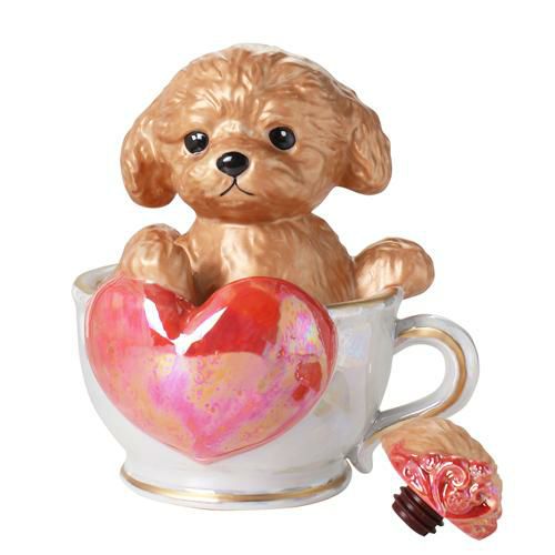 目を引く容器は日本製のハンドメイド陶器ボトル。完全手作業でブラウンパールに色付けされたかわいらしいティーカッププードル。