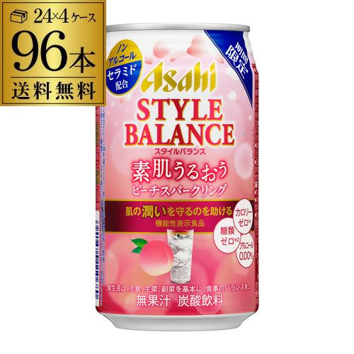 3. 送料無料 アサヒ スタイルバランス 素肌うるおうピーチスパークリング 期間限定 350ml×96本 4ケース ノンアルコール Asahi 長S