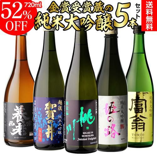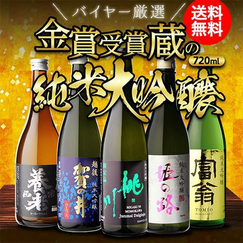 純米大吟醸 送料無料 飲み比べ セット 辛口 720ml 5本 全て全国新酒鑑評会“金賞”受賞蔵!