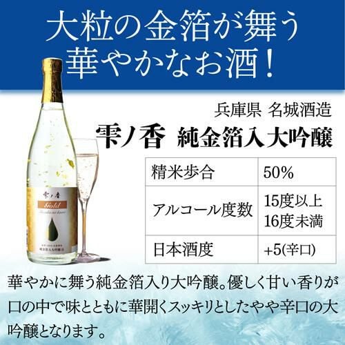 日本酒 ギフト 雫ノ香 大吟醸 純金箔入 スリーブ付 720ml ギフト箱入り 兵庫県 名城酒造 清酒 四号 瓶 加賀金箔