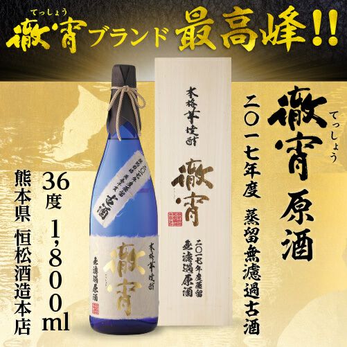 徹宵 無濾過原酒 36度 1800ml 2017年度蒸溜 古酒 てっしょう 1.8L 一升 限定 限定品 いも焼酎 熊本 新焼酎 季節限定 黄金千貫 黄麹 吟醸酵母