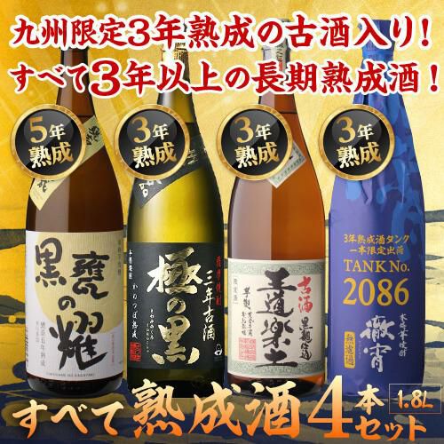 送料無料 焼酎 すべて熟成芋焼酎 古酒飲み比べセット 25度 1.8L×4