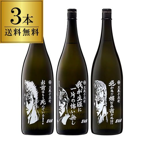 【送料無料】北斗の拳ボトル(ケンシロウ・ラオウ・サウザー)3本セット 黒麹芋焼酎 25度 1800ml×3本 佐賀県 光武酒造場 常圧蒸留 一升 瓶 本格焼酎 黄金千貫 コガネセンガン 紅はるか ベニハルカ 黄金優 コガネマサリ 長S