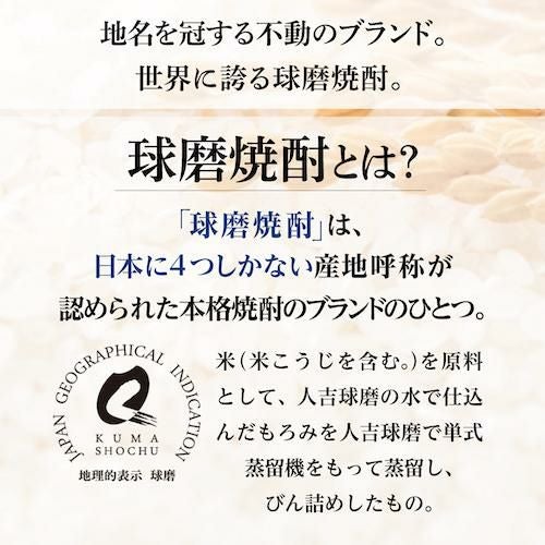 世界産地指定を受けている球磨地方で、大正6年より培った製造技術を注ぎ込んだ純米焼酎。