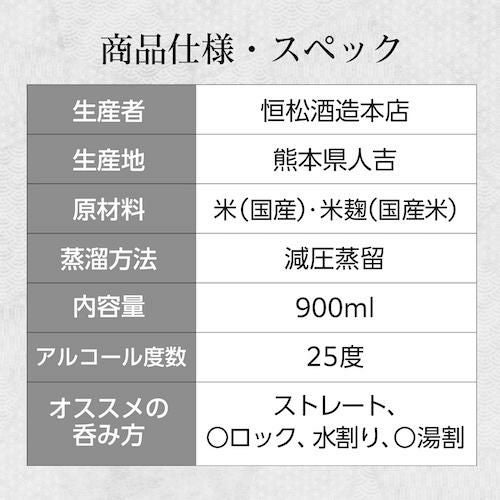 球磨焼酎 大球磨 純米製二十五度 900ml 6本販売 熊本県 恒松酒造本店