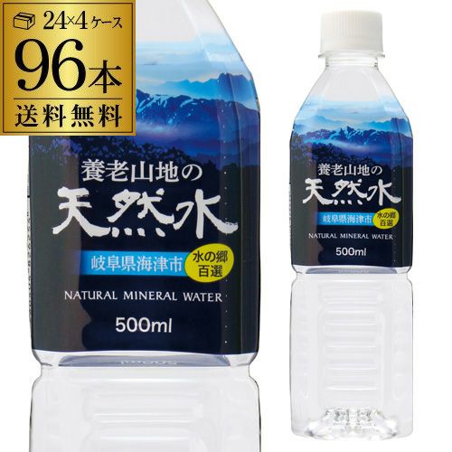 養老山地の天然水 500ml×96本 (24本×4ケース) 送料無料 PET ペットボトル ウォーター 無糖 ナチュラルミネラルウォーター 岐阜 養老 二個口でお届けします 長S