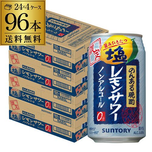 ノンアルコール サントリー のんある晩酌 塩レモンサワー 350ml×4ケース 計96本 96缶 送料無料 ノンアル ノンアルカクテル チューハイテイスト飲料 SUNTORY 国産 長S