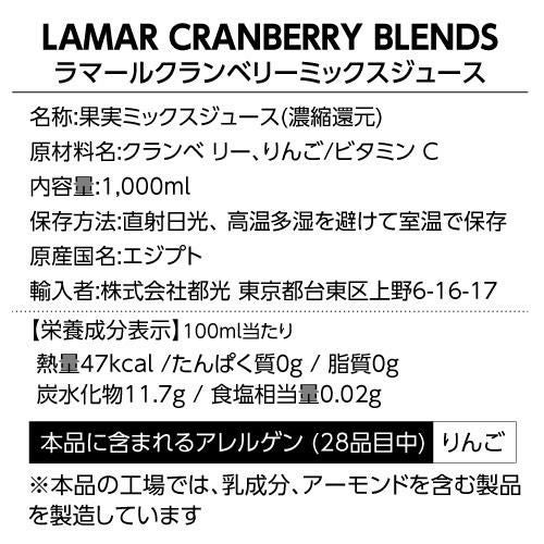 砂糖なし 保存料なし 安定剤なし 賞味期限2026.4.23 クランベリーミックスジュース 1000ml 24本 送料無料 ラマール クランベリー 紙パック 1L 1,000ml 大容量 まとめ買い 長S