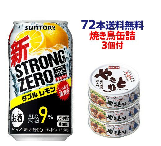 4. 景品付き 焼き鳥缶詰 3缶プレゼントサントリー チューハイ -196℃ ストロングゼロ ダブルレモン 350ml×72本 3ケース販売 送料無料サワー レモン レモンサワー缶 やきとり缶 長S