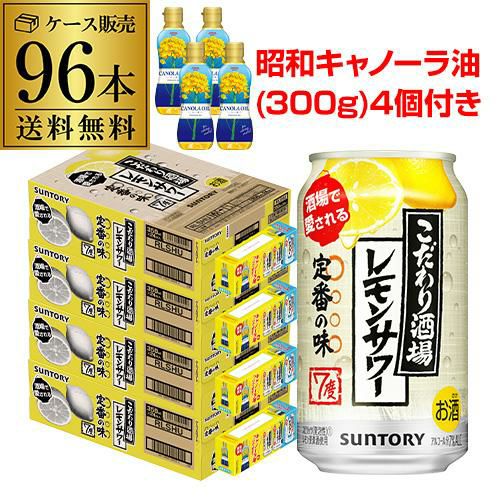 4. 昭和キャノーラ油(300g)4個付き 送料無料 サントリー こだわり酒場のレモンサワー 350ml缶×96本 (24本×4ケース) チューハイ サワー レモンサワー レモン 長S