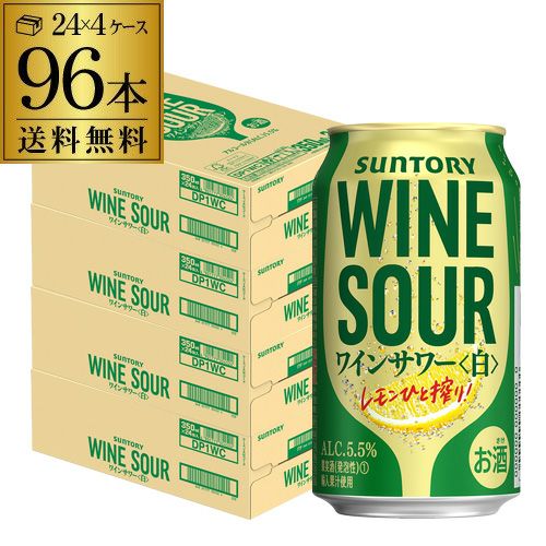 4. サントリー ワインサワー 白350ml×96本 (24本×4ケース)1本当たり150円(税別) 送料無料 ワイン 白ワイン WINE SOUR SUNTORY チューハイ サワー 缶チューハイ 長S