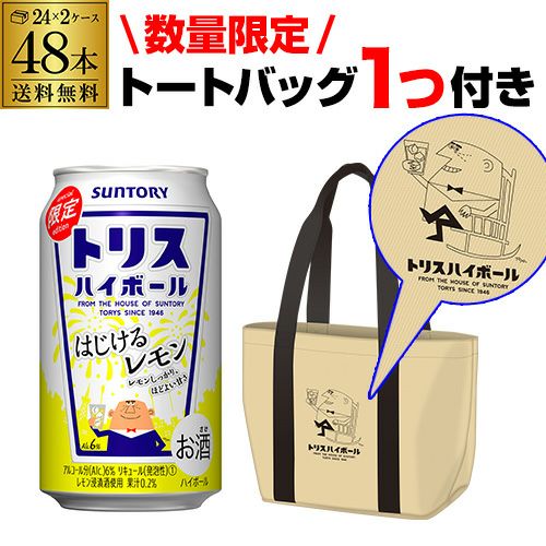 景品付き トートバッグ1個 送料無料 サントリー トリス ハイボール缶 はじけるレモン 期間限定 350ml缶×48本 (24本×2ケース) 長S