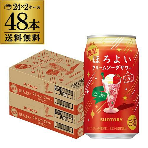 本州/東北/四国/九州は送料無料! 送料無料 サントリー ほろよい クリームソーダサワー いちご 期間限定 350ml缶×48本 (24本×2ケース) チューハイ サワー 缶チューハイ 苺 イチゴ SUNTORY 長S