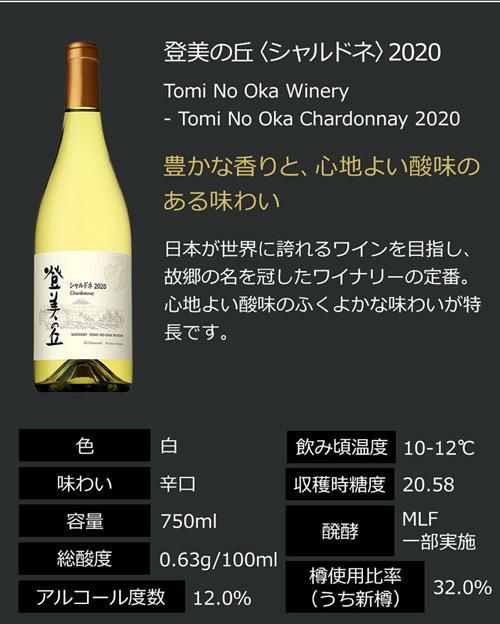6. 登美の丘 シャルドネ 750ml サントリー ジャパンプレミアム白ワイン 辛口 ギフト プレゼント 日本ワイン 国産ワイン 長S