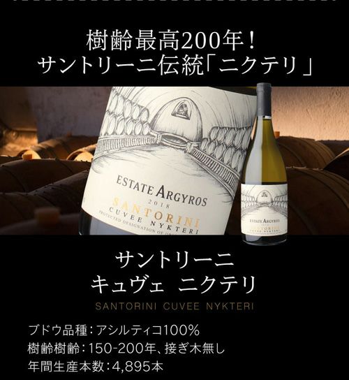 2021年初リリースのキュヴェ「ニクテリ(Nykteri)」エステートアルギロスの古くからある、伝統的なサントリーニスタイルのワインです。