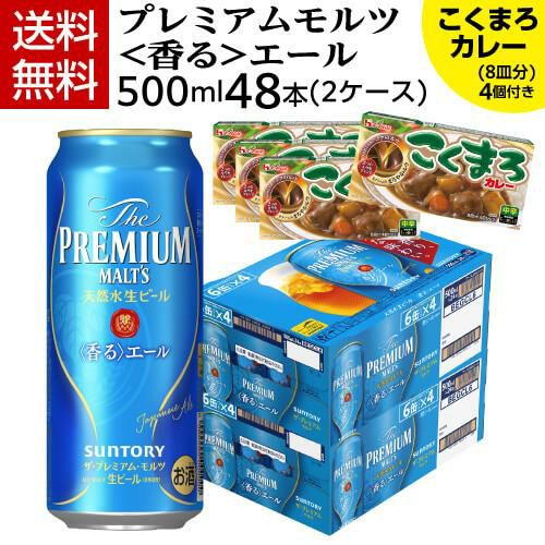 今ならカレールウが付いてくる! こくまろカレー4個(32皿分)付き サントリー ザ プレミアムモルツ 香るエール 500ml×48本 送料無料 2ケース(48缶) プレモル ビール 景品付 国産 ロング缶 長S