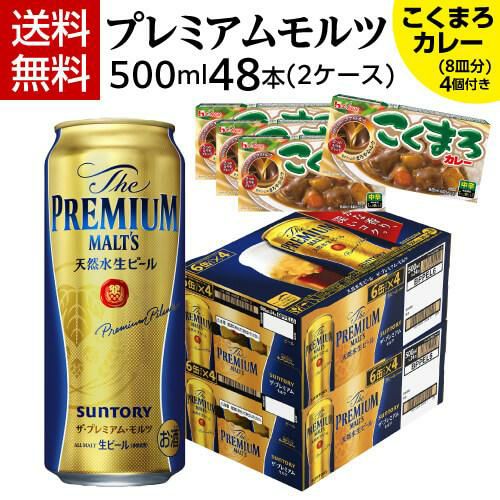 4. こくまろカレー4個(32皿分)付き サントリー ザ プレミアムモルツ 500ml×48本 送料無料 2ケース(48缶) プレモル ビール 景品付 国産 ロング缶 長S