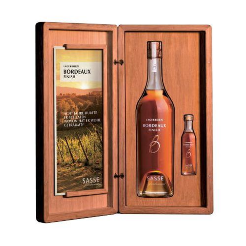 穀物を原料とし、ドイツ国内で中世から親しまれてきた蒸溜酒で食後酒として単独で飲まれたりビールのチェイサーとしても愛飲されていました。安酒のイメージも強いコルンですが製造元のザッセ社は他の蒸溜酒に負けない品質を求めました。ミネラルを豊富に含んだ湧水を使用し、昔ながらの銅製のポットスチルで蒸溜、特にこのボルドーフィニッシュは同社の主力商品である「ミュンスター・ランダー・ラガーコルン」をコニャック樽で4年熟成した後に、あのCh.ラトゥールの樽で8年以上の熟成を行いました。