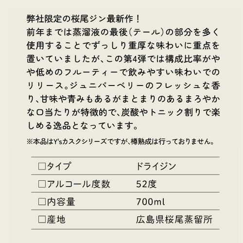 桜尾 ジン Y's Choice エクスクルーシブ エディション 2024 700ml 52度 広島 サクラオブルワリーアンドディスティラリー SAKURAO GIN 国産 ジャパニーズ クラフトジン スピリッツ Y's Cask シリーズ 長S