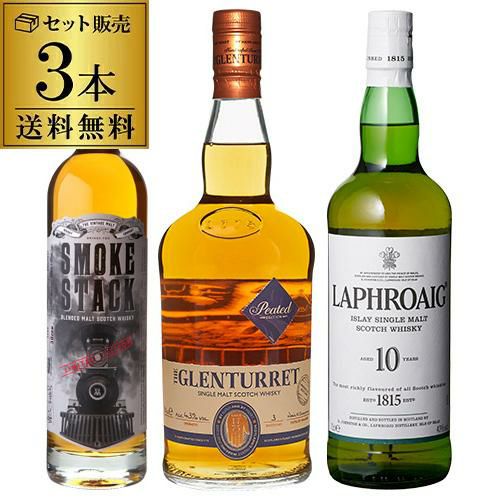 4. ウイスキー セット 詰め合わせ 飲み比べ 送料無料スモーキーウイスキー3本セット [長S] ウィスキー アイラ ラフロイグ 10年 グレンタレット ピーテッド スモークスタック ギフト