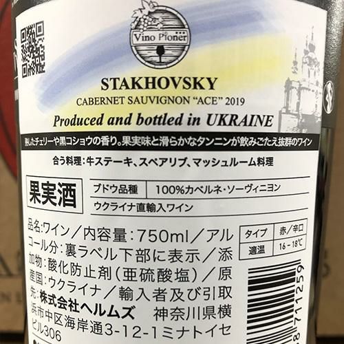 5. カベルネ ソーヴィニヨン エース 2019スタホフスキー 750mlウクライナ カルパチア ウクライナワイン 辛口 赤ワイン 浜運