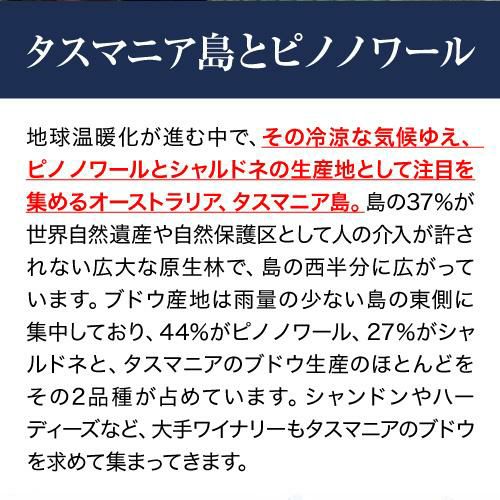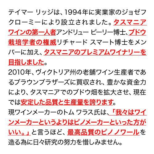 タスマニア最高峰のピノ。テイマー・ヴァレーの真髄が感じられる風味豊かで完成度が高い。