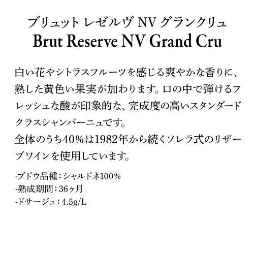希少!シュイイ村のグラン・クリュ100%シャルドネ使用。白い花やシトラスを感じる爽やかな香り、口の中ではじけるフレッシュな酸が印象的。完成度の高いスタンダードクラス。