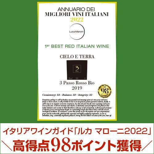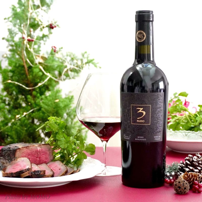 サンジョヴェーゼ50%、ネグロアマーロ50%。有機栽培認証のワイン。南イタリアの熟した果実味と程よいコク。3パッソとは3ステップの意味