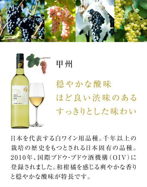 千年以上の裁培の歴史を持つとされる日本固有の白ワイン用品種。そのやさしく繊細な味わいが「日本的な美しさ」のあるワインといわれます。