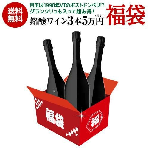 口外禁止&SNS禁止 シャンパーニュ2本&赤ワイン1本 137,500円相当が入って55,000円! 5万円(税別)福袋おまけ付