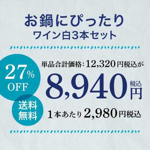 ほっこりお鍋と一緒にワイン 白3本セット 3弾 750ml 3本入