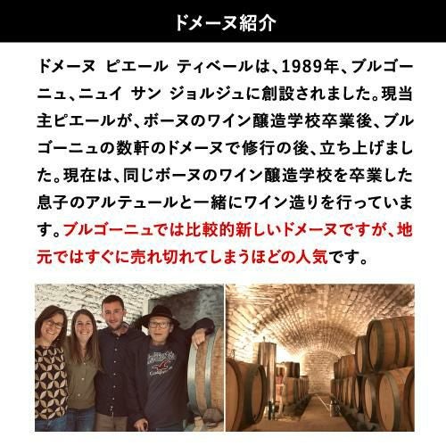 ドメーヌ ピエール ティベールは、1989年に創設。ピエールが、ボーヌのワイン醸造学校卒業後、ブルゴーニュの数軒のドメーヌで修行の後、立ち上げたドメーヌです。現在は、父同様にボーヌのワイン醸造学校を卒業した息子のアルテュールと一緒にワイン造りに勤しんでいます。コート・ド・ボーヌとコート・ド・ニュイに合計5haの畑を所有。ドメーヌの哲学は設立当初から変わらず、テロワールを可能な限り尊重し、そのテロワールの潜在能力を最大限にワインに体現させることです。