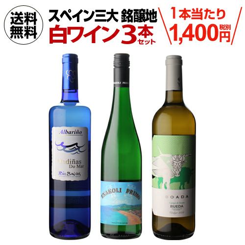 4. 1本当たり1,400円(税抜) 送料無料 スペイン三大銘醸白ワイン3本セット 750ml 3本 セット 飲み比べ チャコリ リアスバイシャス ルエダ ワインセット 長S