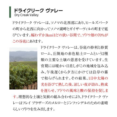 原産国・生産国/生産地 アメリカ/カリフォルニア、ドライ・クリーク・ヴァレー