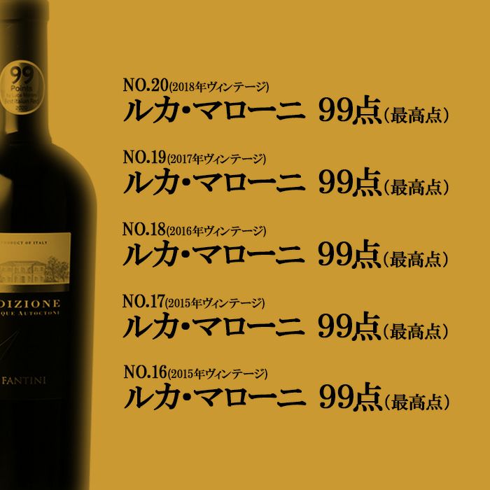 葡萄品種モンテプルチャーノ33%、プリミティーヴォ30%、サンジョヴェーゼ25%、ネグロアマーロ7%、マルヴァジア ネーラ5%