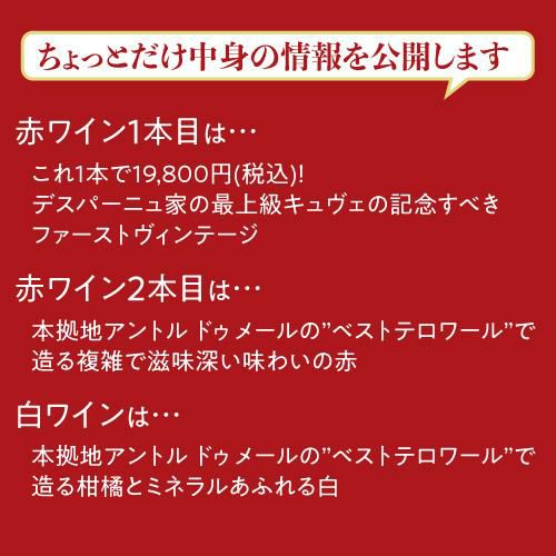 3本合計で32,780円(税込)相当のワイン入り! (ポイント3倍)送料無料 生産者別に楽しむデスパーニュ 3本1.5万円(税別)福袋