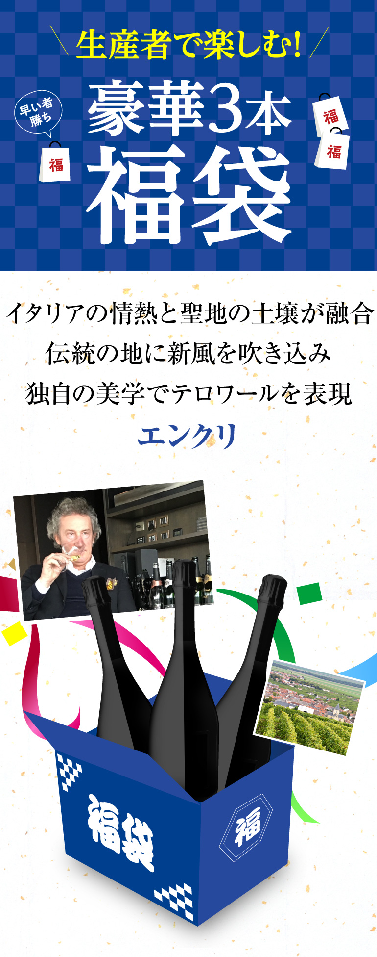 3本合計で62,700円(税込)相当のワイン入り! 生産者別に楽しむ エンクリ 3本 3万円(税別)福袋