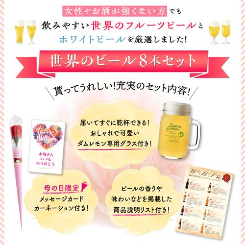 他の画像を見る 母の日限定!メッセージカード&カーネーション付き! ビール ギフト 飲み比べ 母の日カード&カーネーション付き 世界のフルーツ&ホワイトビール8本+専用グラスセット 送料無料 飲み比らべ 詰め合わせ 贈り物 プレゼント クラフトビール 長S 予約 2026/4月下旬以降発送予定 ¥ 3,998 税込 お気に入りに登録する
