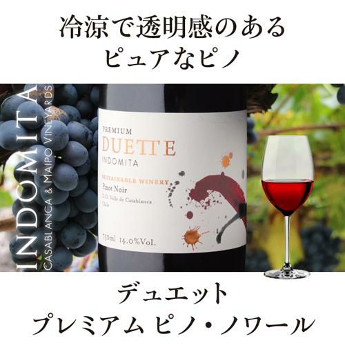 他の画像を見る インドミタ デュエット プレミアム ピノ ノワール [2023] or [2024] チリ 赤ワイン 辛口 長S ワインよりどり3本以上5%OFF ワインよりどり6本以上10%OFF ¥ 2,178 税込 お気に入りに登録する