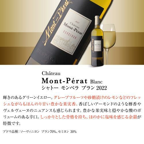 他の画像を見る ANAファーストクラスに採用実績あり! 1本あたり1,925 円(税込) 送料無料 シャトー モンペラ ボルドー ブラン [2022] 750ml 12本入フランス 辛口 白ワイン ソーヴィニヨンブラン セミヨン ケース 長S ¥ 23,100 税込 お気に入りに登録する