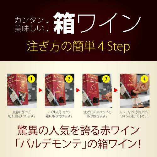 他の画像を見る 750ml換算454円(税込) 送料無料 《箱ワイン》バルデモンテ レッド 3L×4箱ケース (4箱入)赤ワインセット ボックスワイン BOX BIB バッグインボックス 大容量 長S ¥ 7,260 税込 お気に入りに登録する